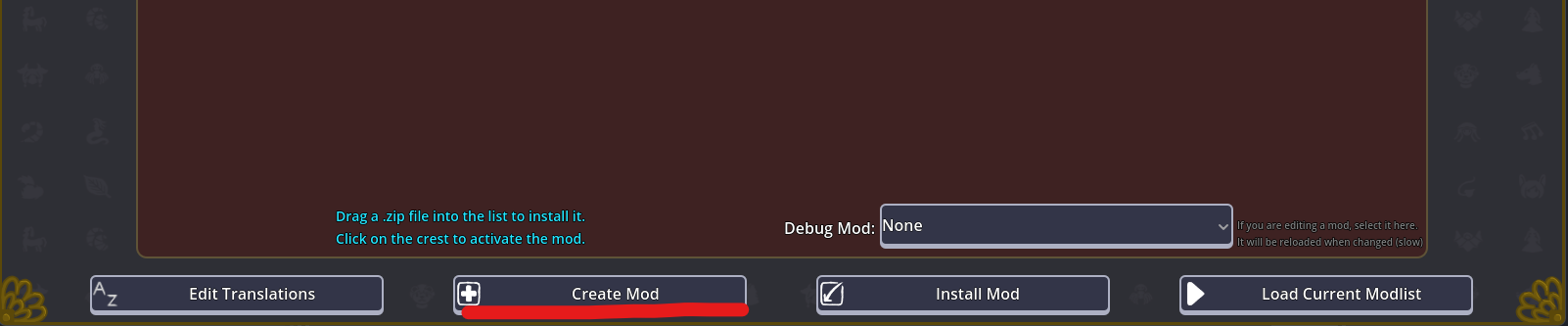 First, create a new mod by selecting the mod manager and pressing the "Create Mod" button.