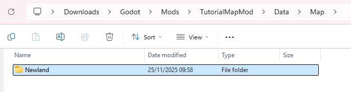 Folder refers to a folder you have to make in your mod file itself. Open your mod folder (you can find the mods location in the Mod Manager) and add a Map folder under Data then a folder under Map with your island's folder name.