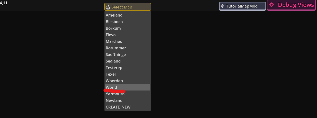 Go back to the map viewer. Be sure to select your mod. And select the World.